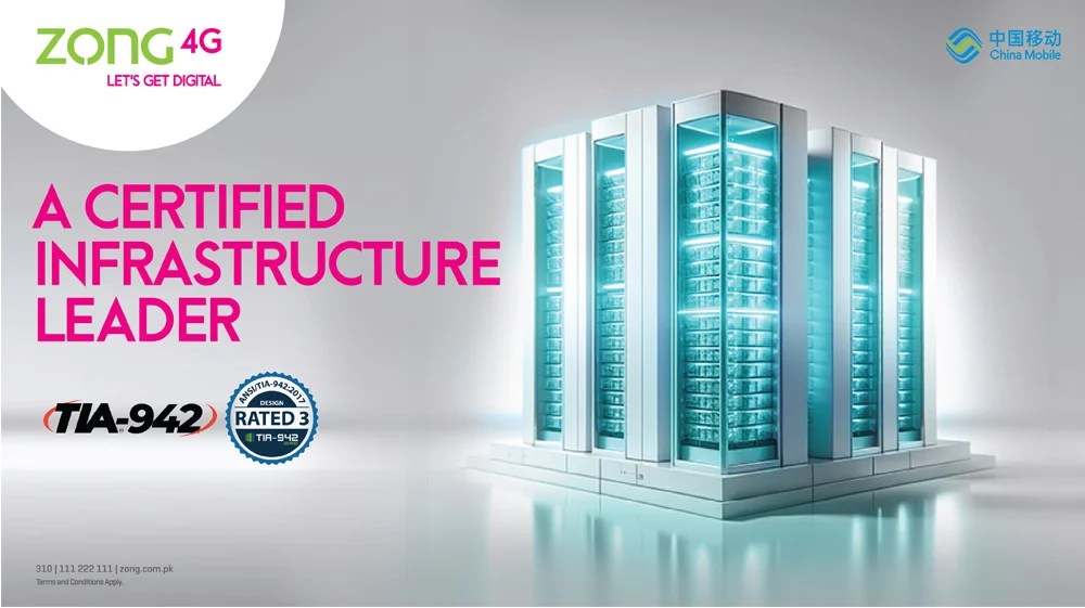 Zong, Pakistan’s leading cellular and digital services provider, proudly announces its achievement of the prestigious TIA-942-C Rated-3 Certification for its Data Center located at Zong HQ, Islamabad. This certification is a testament of Zong’s unwavering commitment to be an excellent information services and technology innovation company of Pakistan.
